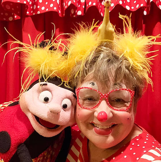 Jane Kinney attended Mooseburger Clown Camp for the first time in 2009. She arrived as Mrs. Kinney, first grade teacher and departed as Ladybug the Clown, first grade teacher! Upon returning home she began weekly visits to senior care facilities to offer a moments of joy, delight, tenderness, and comfort to residents, their families, and staff, through humor, loving kindness, and a playful presence. She also began the Silly Nilly Clown Club in her school for 4th and 5th graders to learn the art of clowning. For the next six years the group entertained in Senior Care Facilities and their school. Ladybug continued to attend Moose Camp summer after summer and upon her retirement from teaching, she added Caring Clown visits at UW Children’s Hospital in Madison, and holiday shows at Senior and Memory Care Centers. Still having the teaching bug in her, Ladybug began performing shows on Fire Safety, Kindness, and Read Across America in schools to bring smiles and laughter to children of all ages. Her entertaining programs encourage and educate using humor, music, puppets, whimsical magic, and storytelling. When Pricilla introduced Red Nose Readers in 2019, Jane joyously jumped on board and continues to share the wonderful world of clowning, literacy, and kindness with kids everywhere. Jane is the Director of Red Nose Readers.